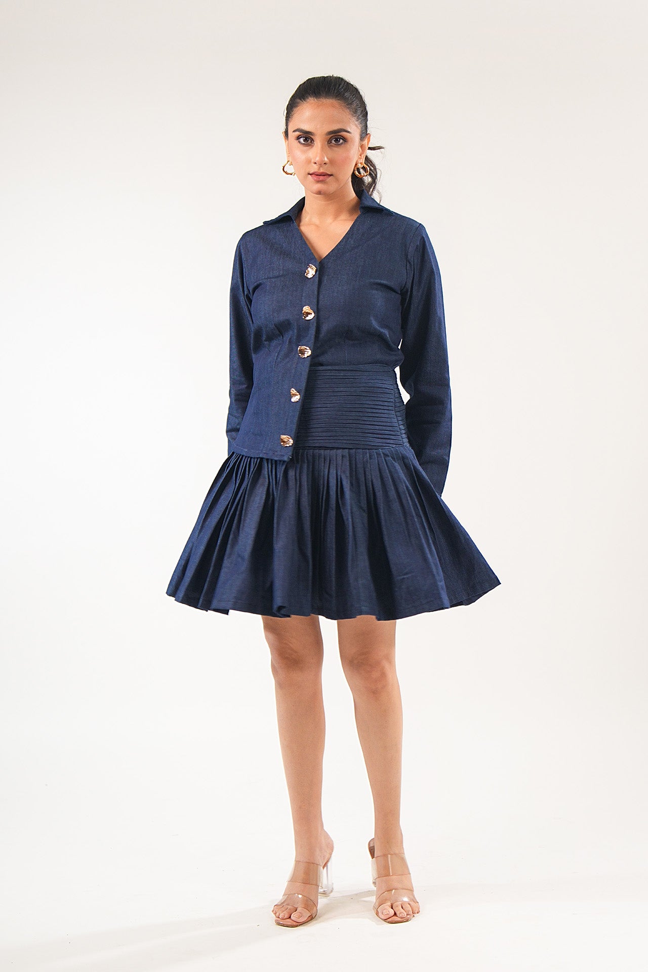 High Waist Wide Pleated Band Mini Skater Skirt